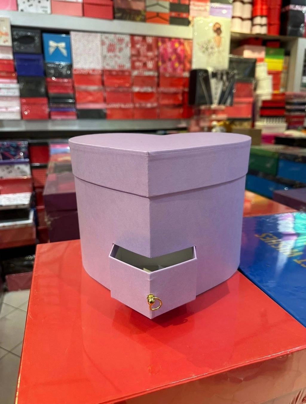 Lila Çekmeceli Kalp Kutu
